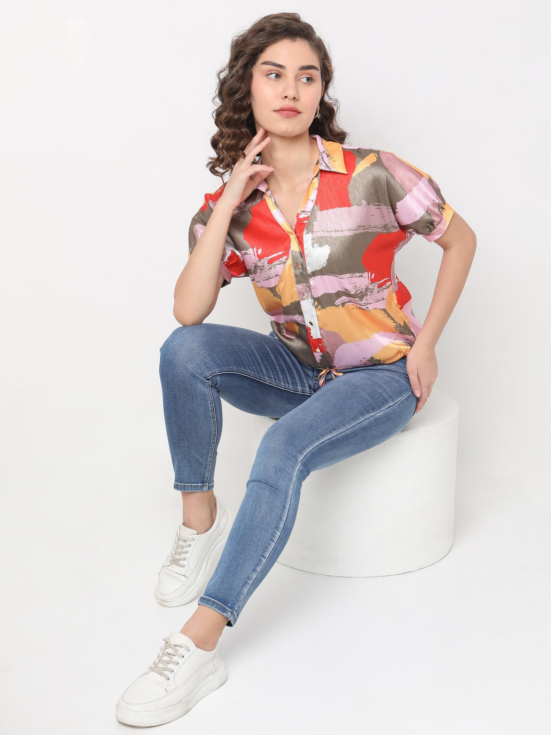 A stylish casual shirt featuring bold abstract floral prints and a modern relaxed fit. The...