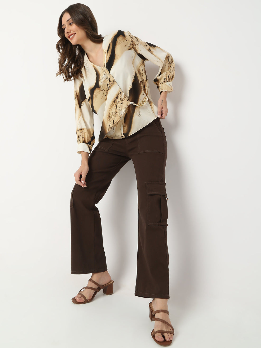 Elevate your wardrobe with this sophisticated wrap style top featuring an artistic abstract print and...