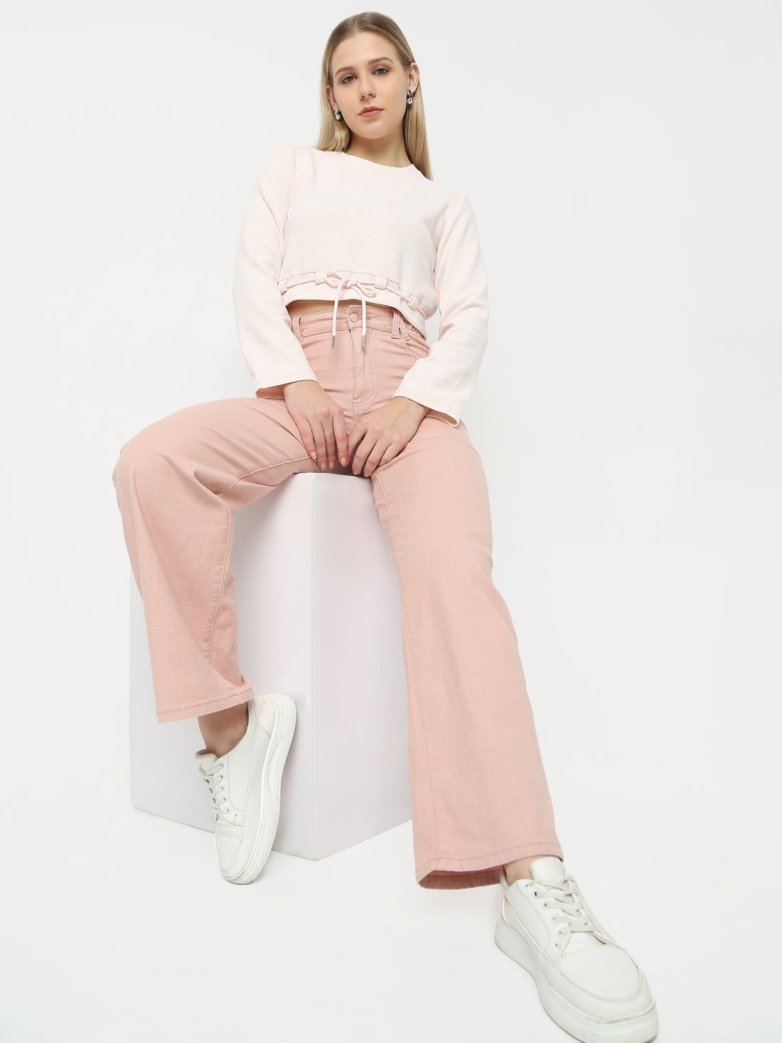 Designed for modern everyday style, this cropped sweatshirt features an adjustable waist tie that allows...