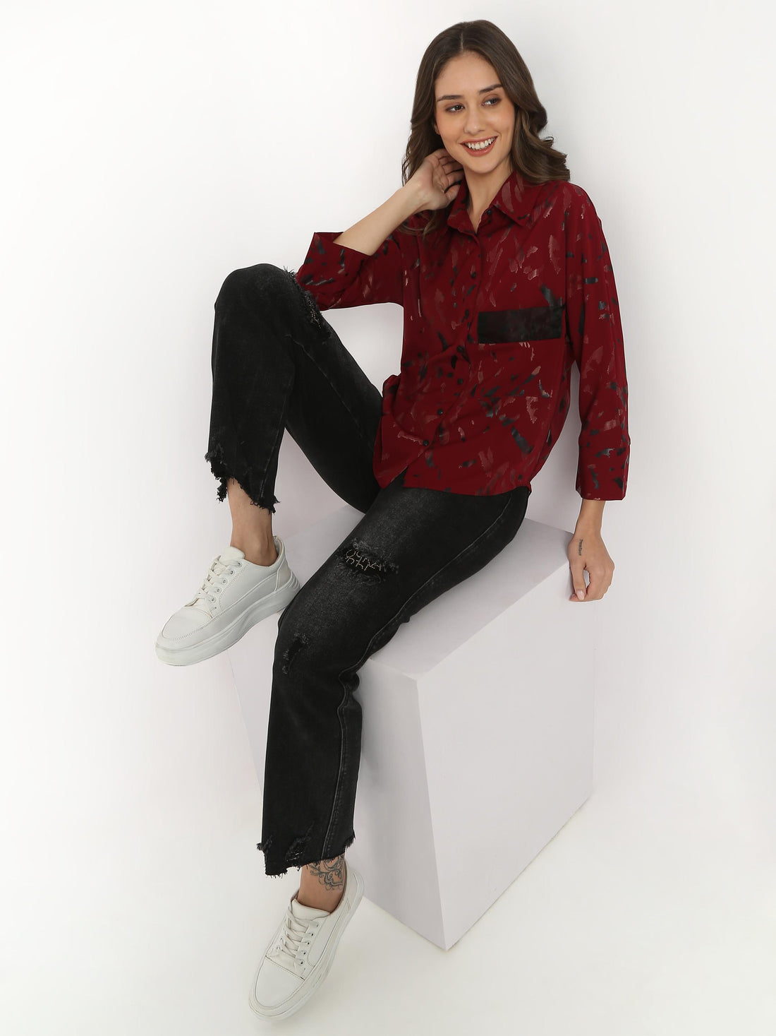 Art-inspired and effortlessly styled. This rich crimson shirt features an all-over abstract brushstroke print in...