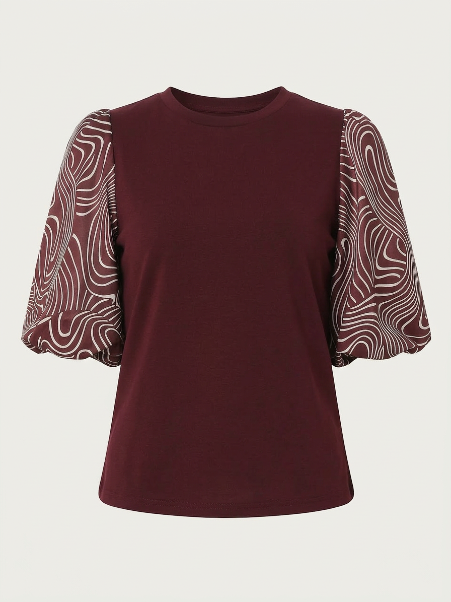 Elevate your everyday style with this statement top featuring bold abstract print sleeves and a...