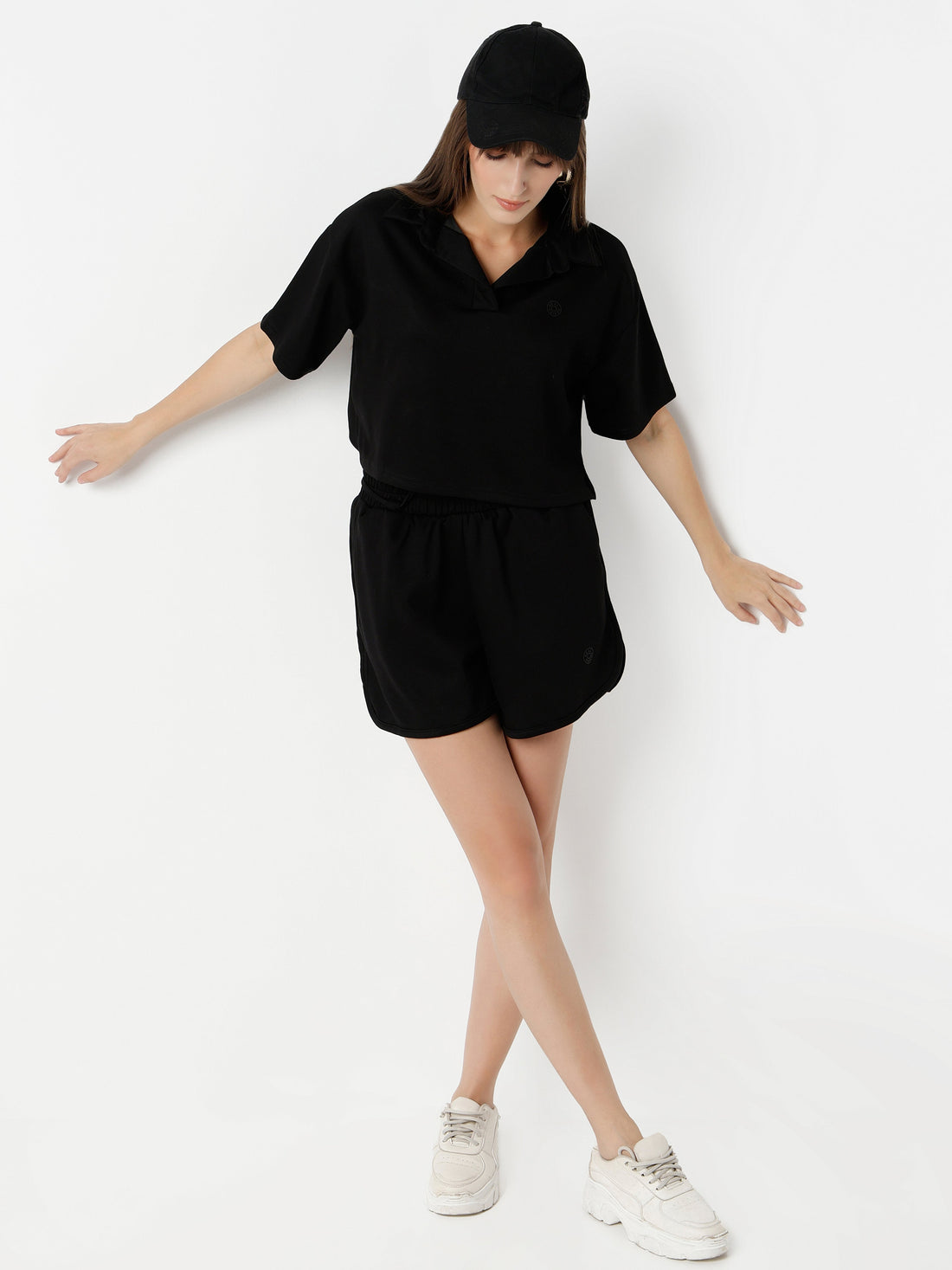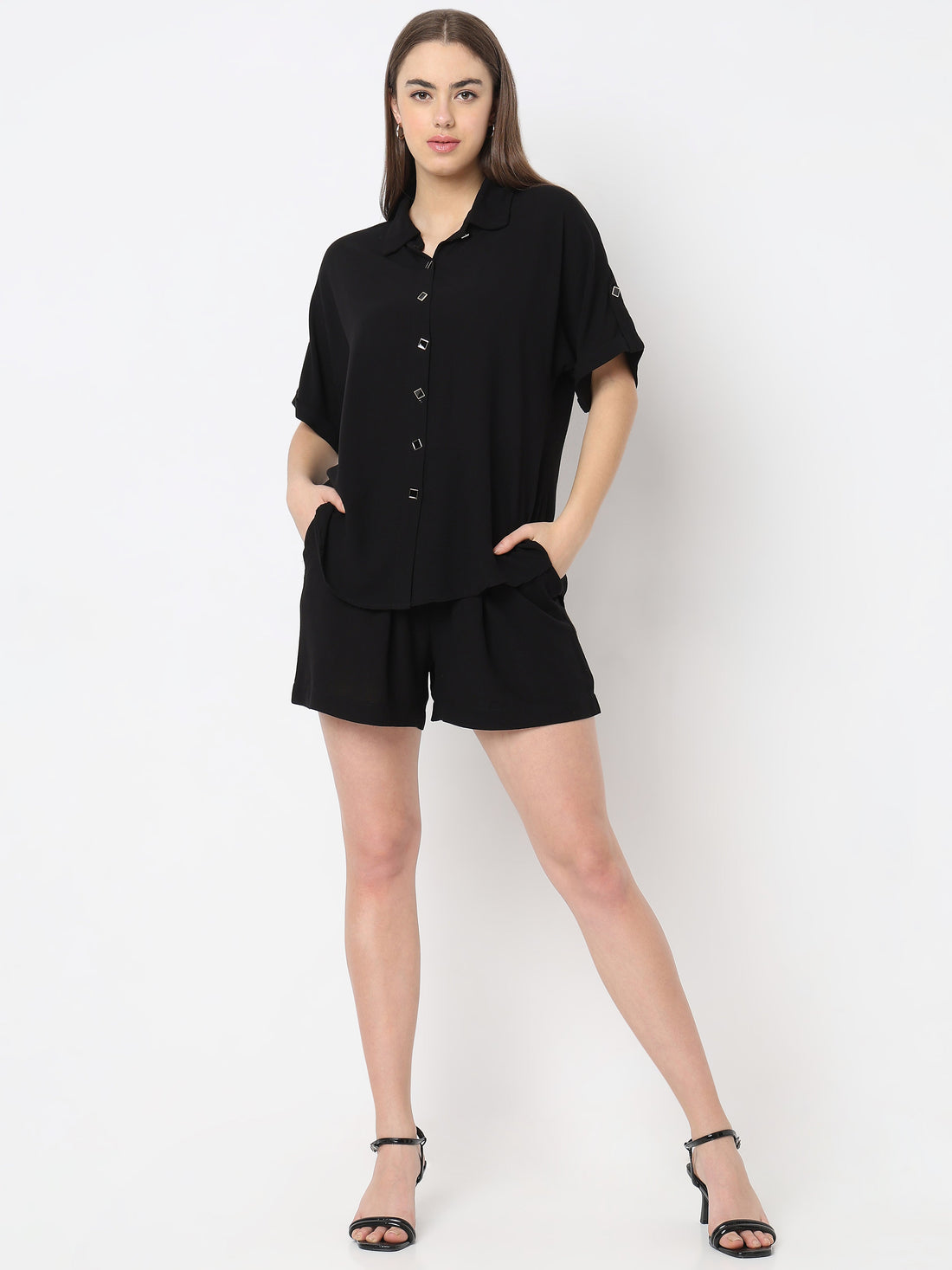 Upgrade your everyday wardrobe with this effortlessly chic black co-ord set for women. Designed as...