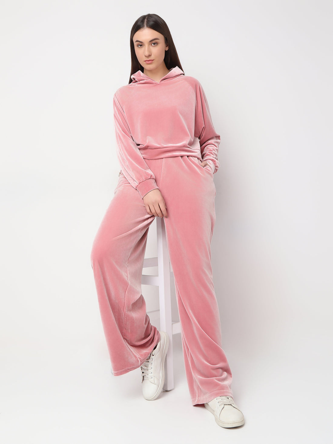 Women’s Velvet Lounge Co-Ord Set – Hooded Top with Wide Leg Pants