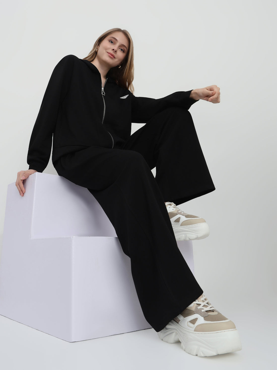 Women’s Zip-Up Hoodie and Wide-Leg Pants Lounge Set